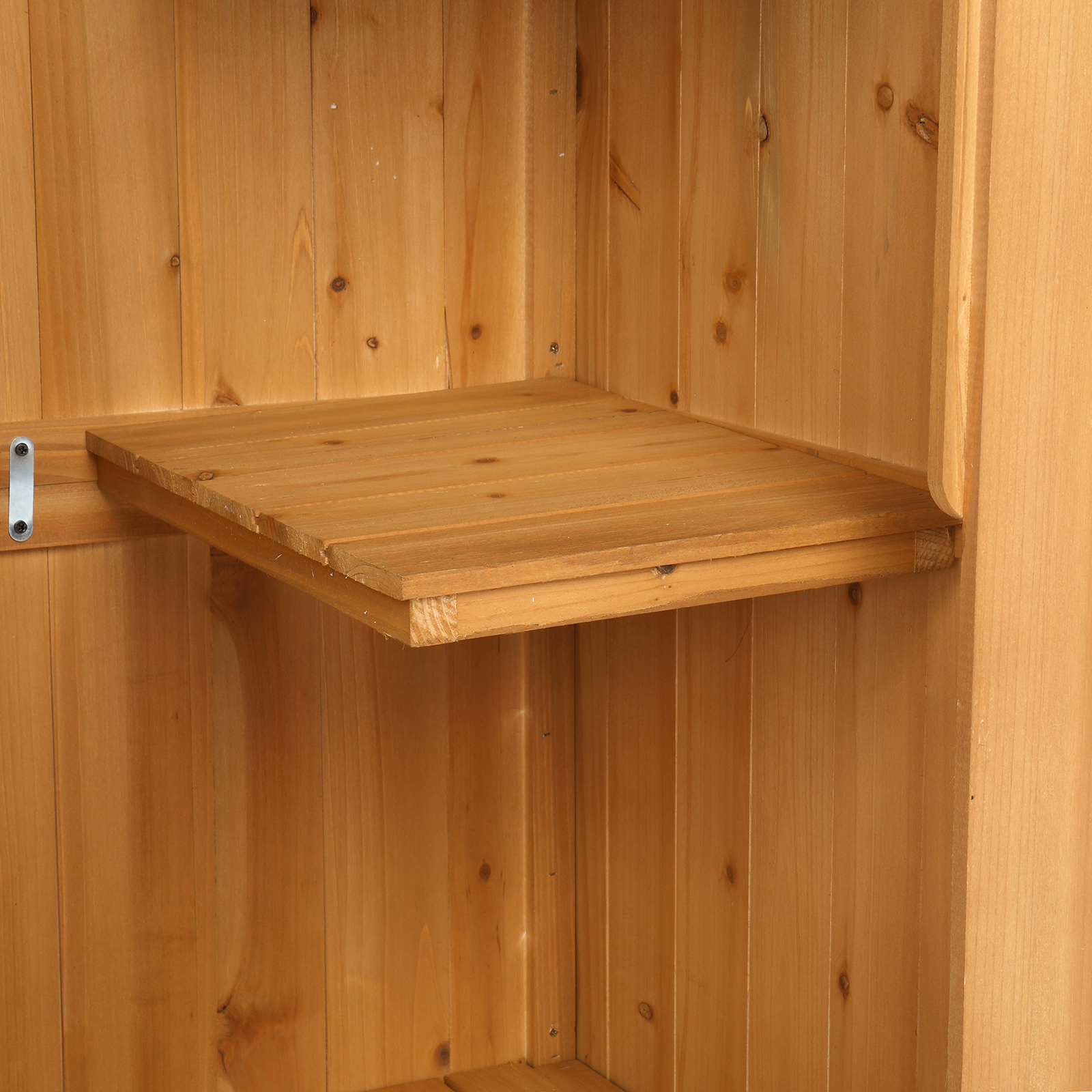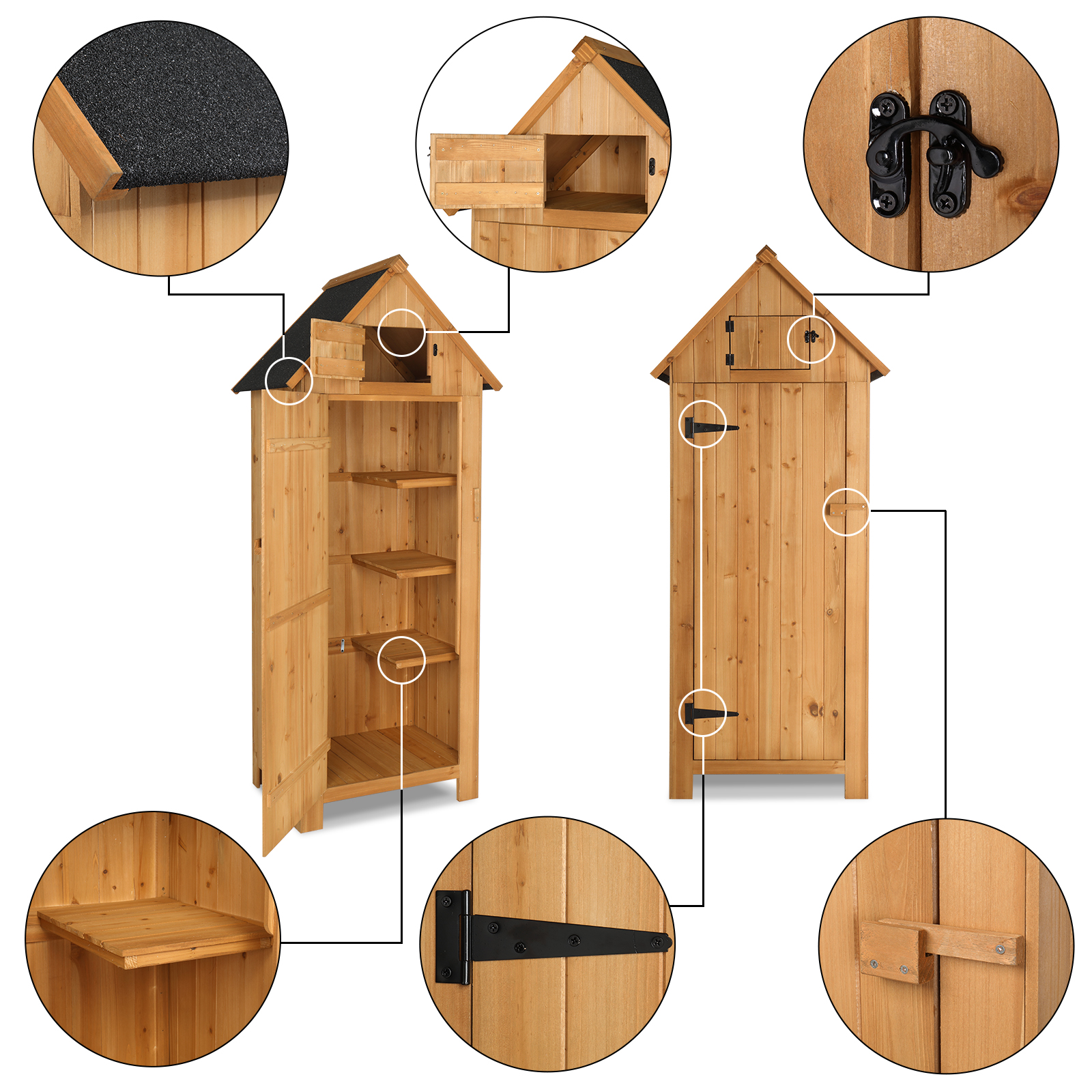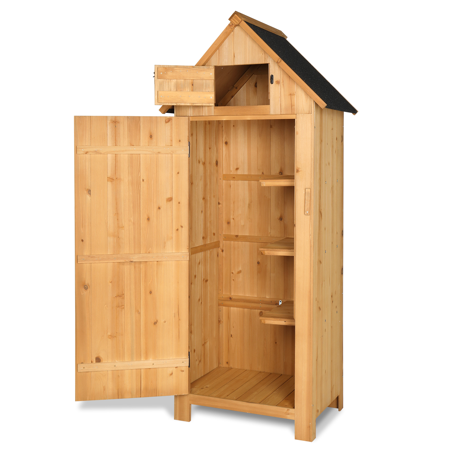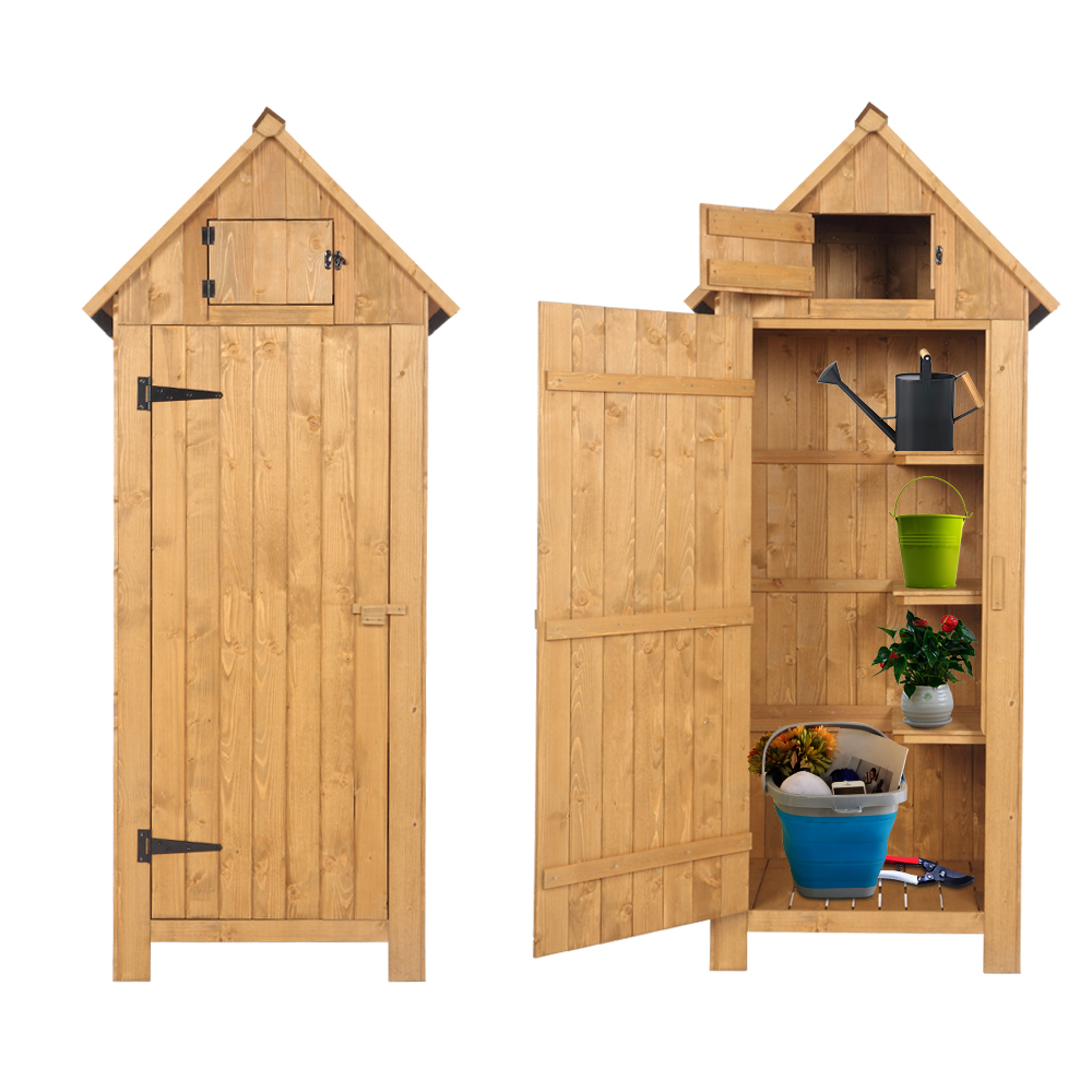 Is your garage cluttered with large garden tools, step ladders, or lawn furniture? Do you need some extra room to store some small things such an watering can, rainshoes, rakes, shovels and other small tools. Merax Arrow wooden garden shed provides the extra space you require at a price you can afford. This shed is easy to assemble and looks very beautiful to decorate your yard. It is really economic and practical. This arrow shed's body is cedar wood which covered with waterproof paint. The roof is plywood covered with asphalt felt. There is three storage shelves inside the arrow shed. If you're in the market for outdoor storage but only need to store a few pieces of equipment, the merax arrow shed offers an inexpensive alternative to you. Do not miss this chance.