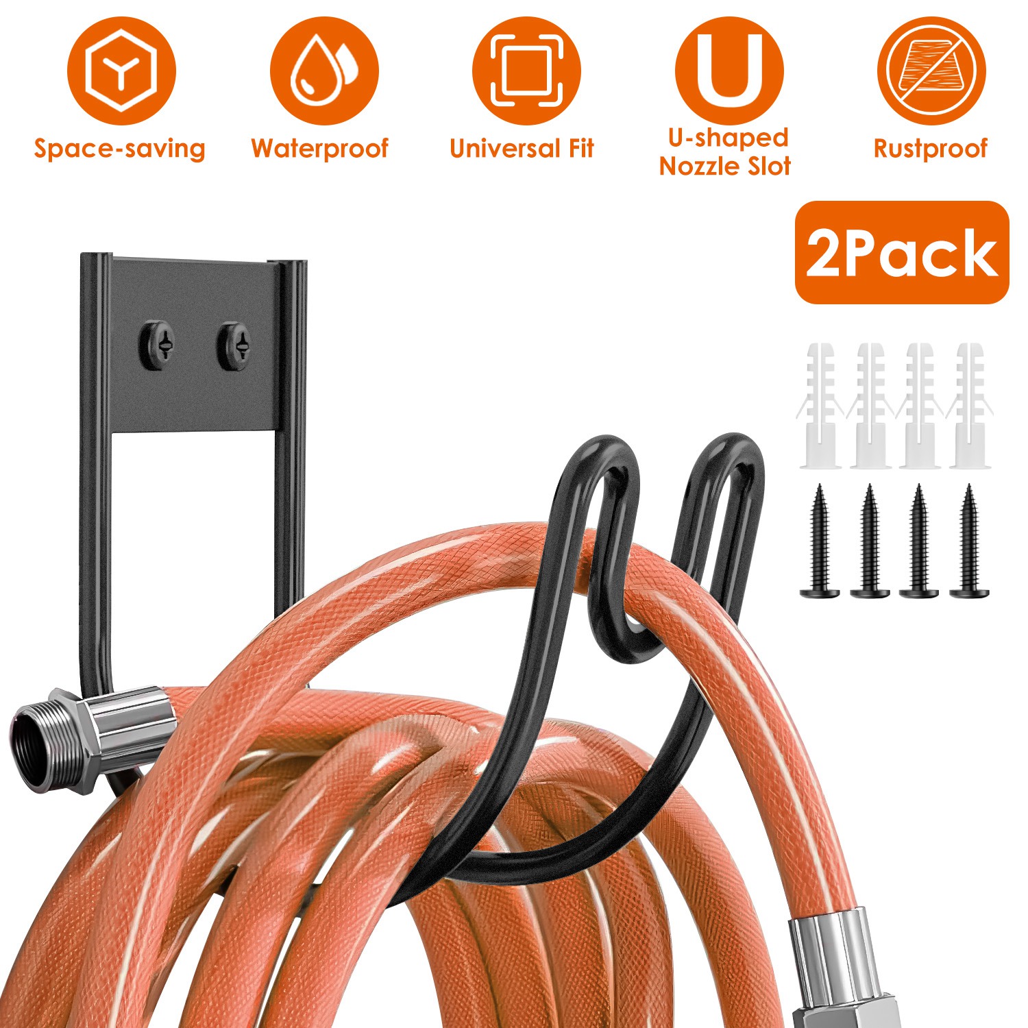 Made from premium 304 stainless steel, our hose hanger is waterproof and rust-resistant, able to withstand withstand rainy weathers. The built-in unique nozzle placement slot allows for quick location of the hose head. Fit any size of hose, such as 25ft, 50ft, 75ft, 100ft and so on. Widely used for water hoses, extension cords, vacuum hoses, pool hose hangers, strollers, bikes, etc.. Easy to install on the surface of painted wall, brisk wall, wooden wall or plaster wall.