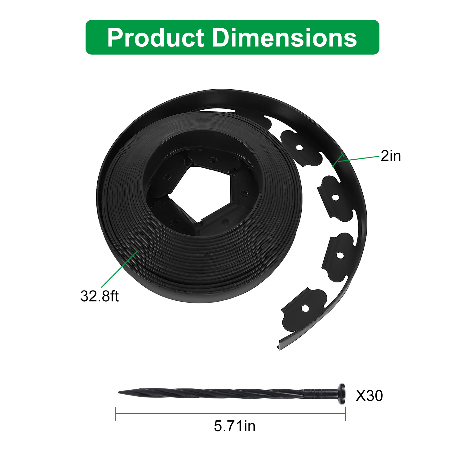 Do you feel tired to dig holes when you do gardening work? Our upgraded landscape edging needs no digging, which makes gardening easier while providing a neater garden. Made of premium PE material, our 32.8ft long edging can be cut short for you to DIY. Comes with 30 2in-tall stakes for quick and firm installation. Durable enough to withstand tough summer sunlight, heavy rain, snow and drought. Widely used for flower beds, tree rings, pathways and etc..