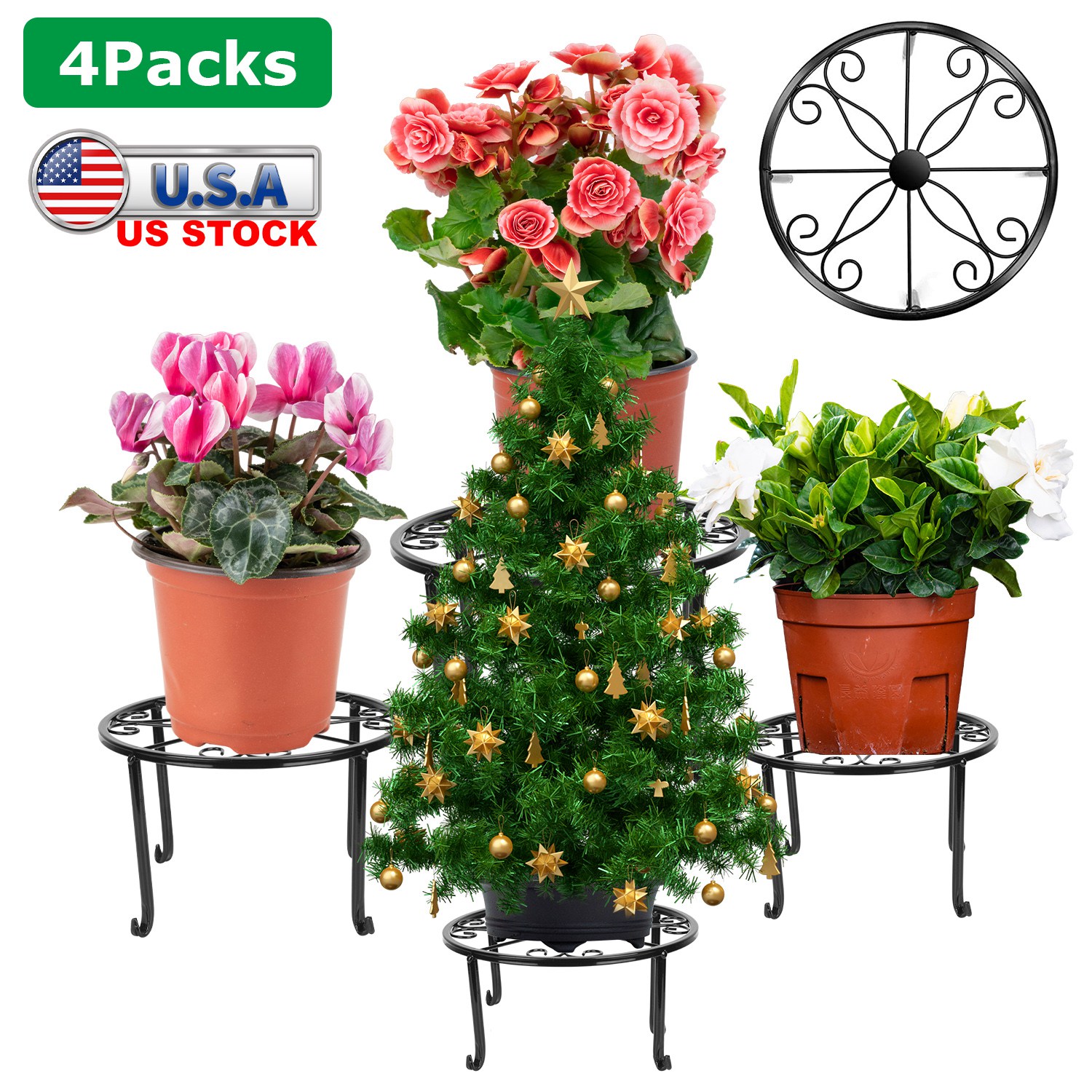 4Packs Iron Plotted Plant Stands Shelves Heavy Duty Round Flower Pot Holder Rack Home Yard Garden Patio Décor