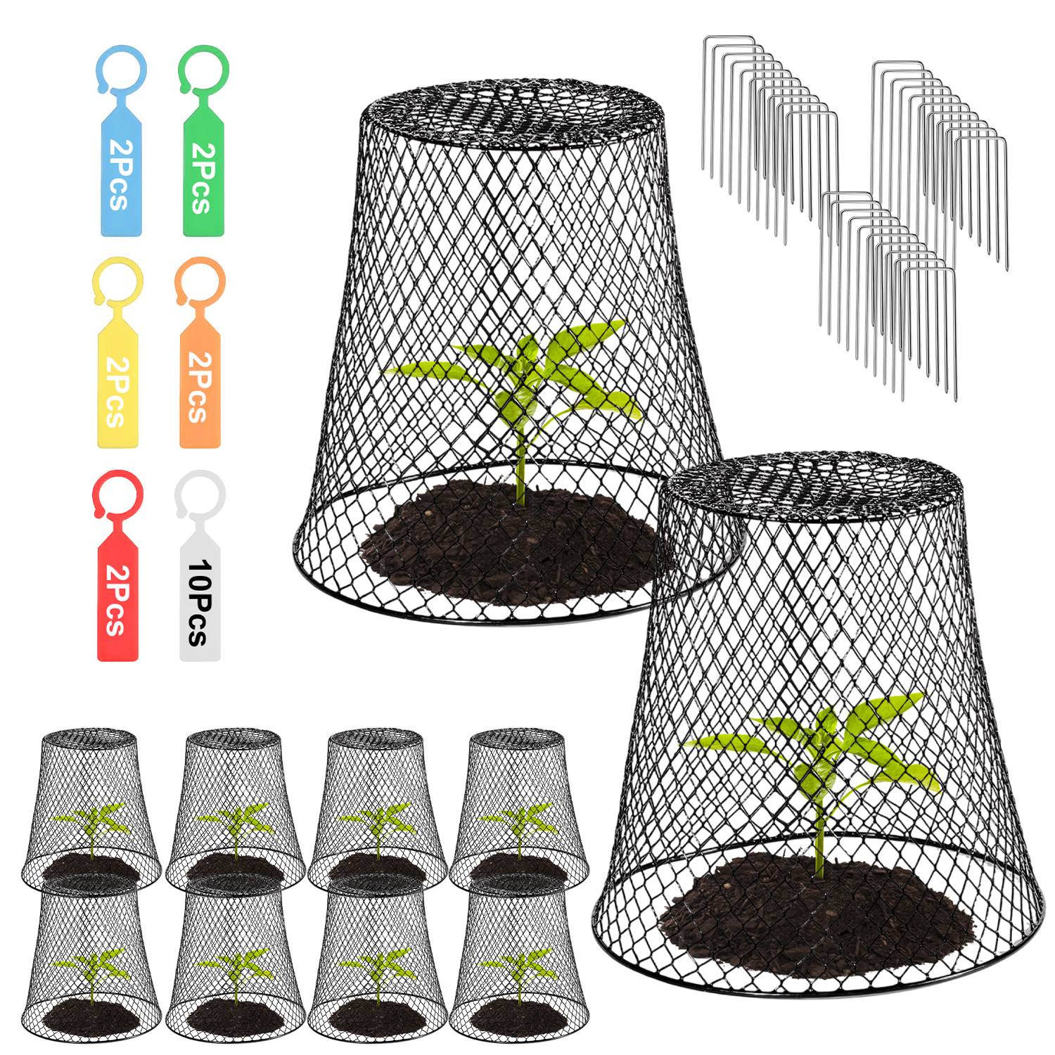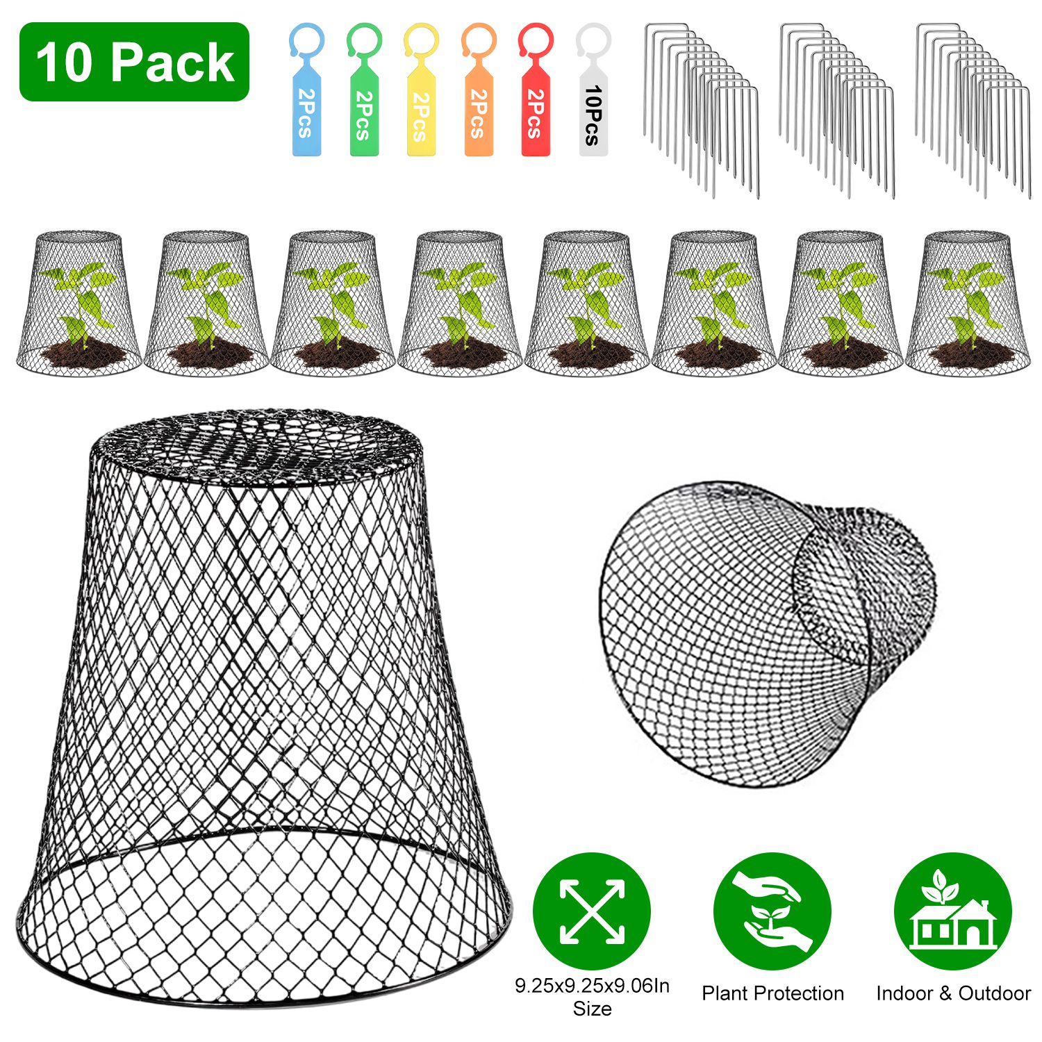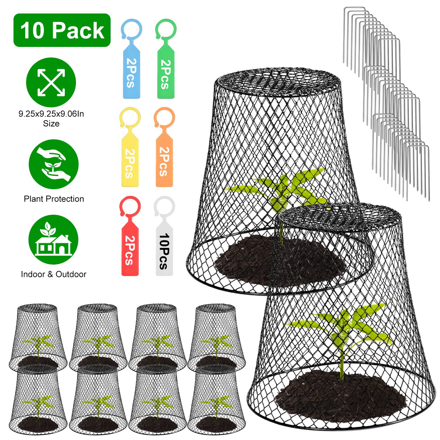 Get all-season protection for your plants! You'll receive 10x Garden Cloches, 30x U-shaped Garden Stakes, 10x White Labels, 10x Color Labels, providing excellent coverage to guard the fruits of your labor. Measuring 9.25inches in diameter and 9.06inches in height, not only help protect your plant seedlings, shrubs, flowers and vegetables from damages of squirrels, rabbits, birds, deer and bunnies etc., but also provide larger space for healthy plant growth. Constructed out of premium iron wires, sturdy, rust and wear resistant and reusable. Easy to install and use. Can be used both indoors and outdoors.