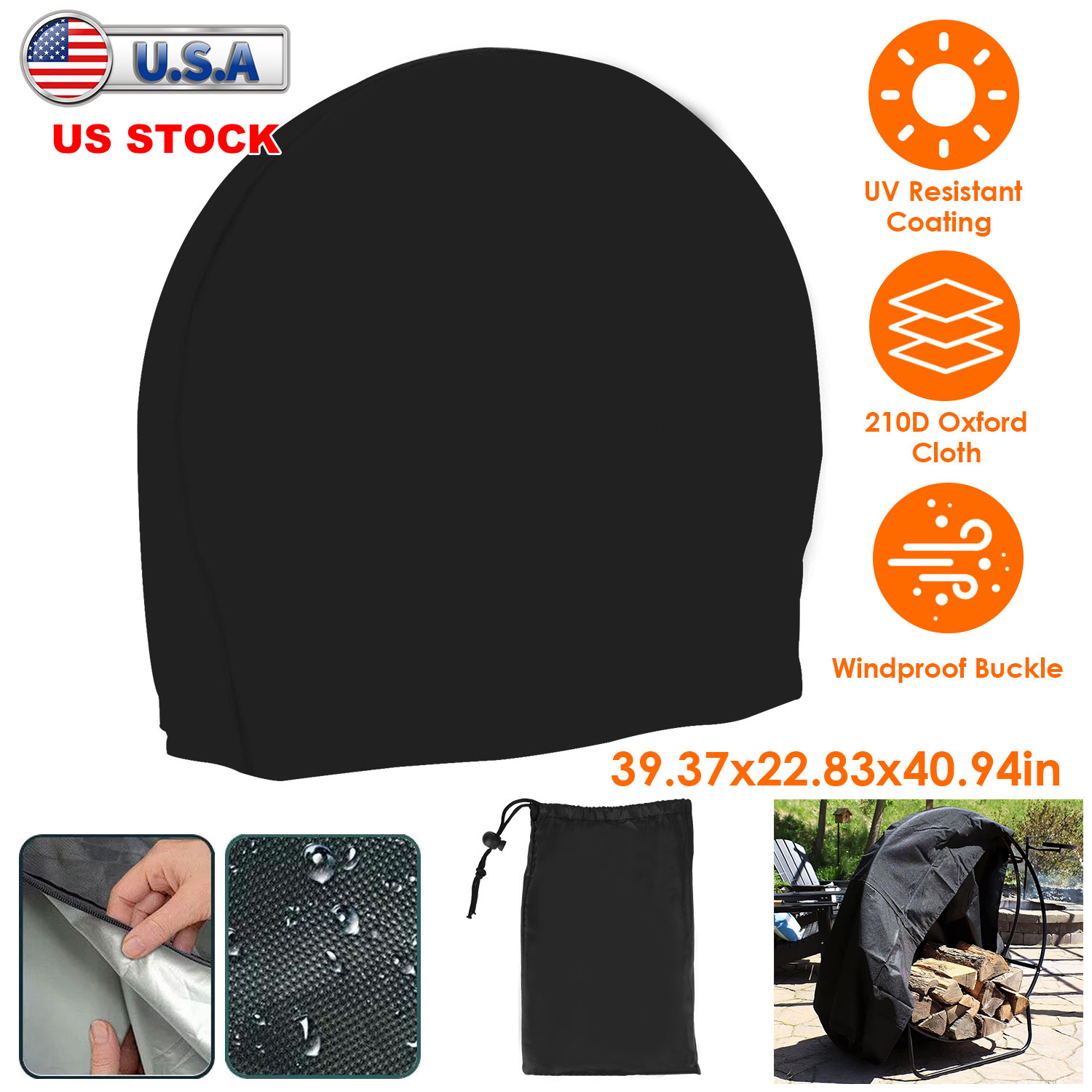 Home > Round Firewood Rack Cover Waterproof Windproof UV Resistant 210D Oxford Cloth Outdoor Circular Wood Log Rack Cover 39.37x22.83x40.94in Black