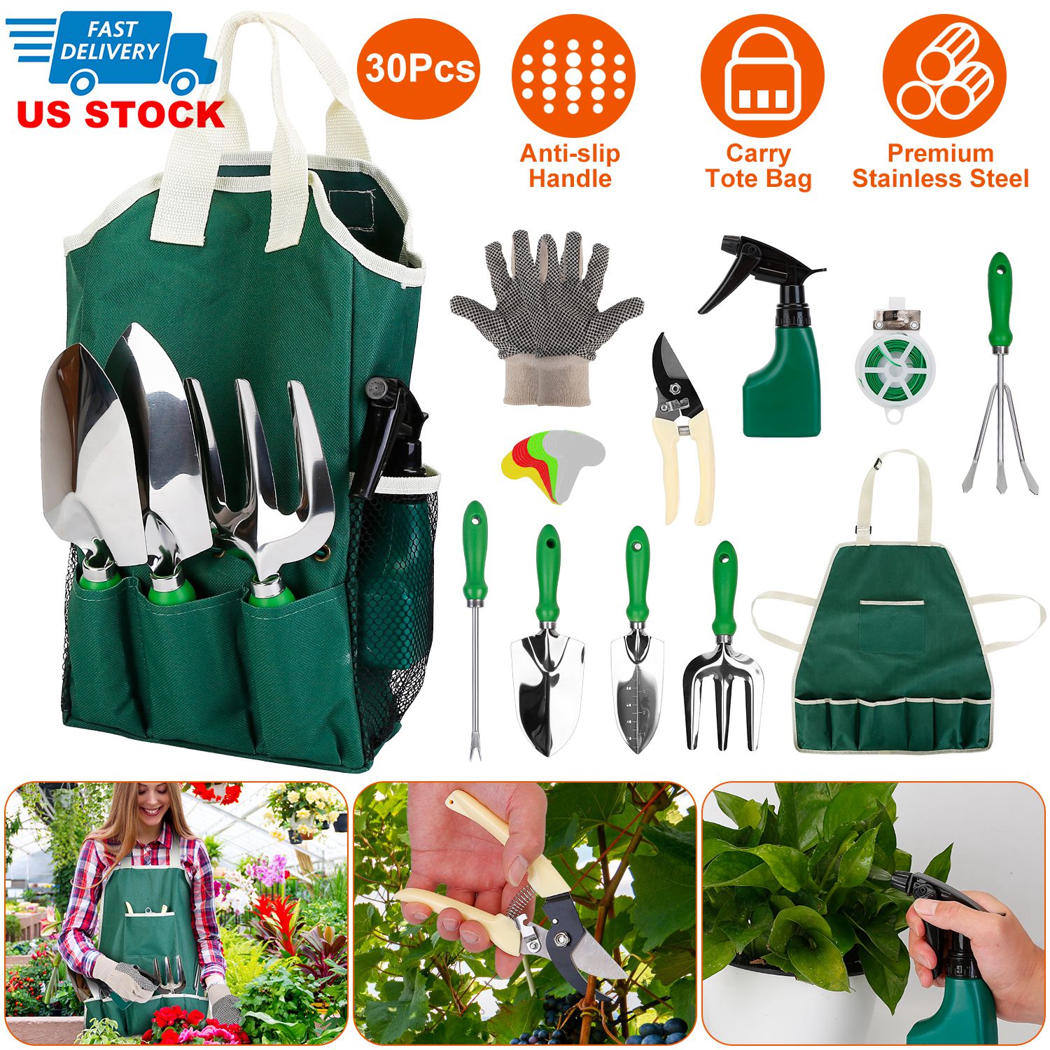 Garden Tool Set 30Pcs Stainless Steel Hand Tools Kit Planting Gardening Work Set with Storage Bag Gloves Apron for Women Men