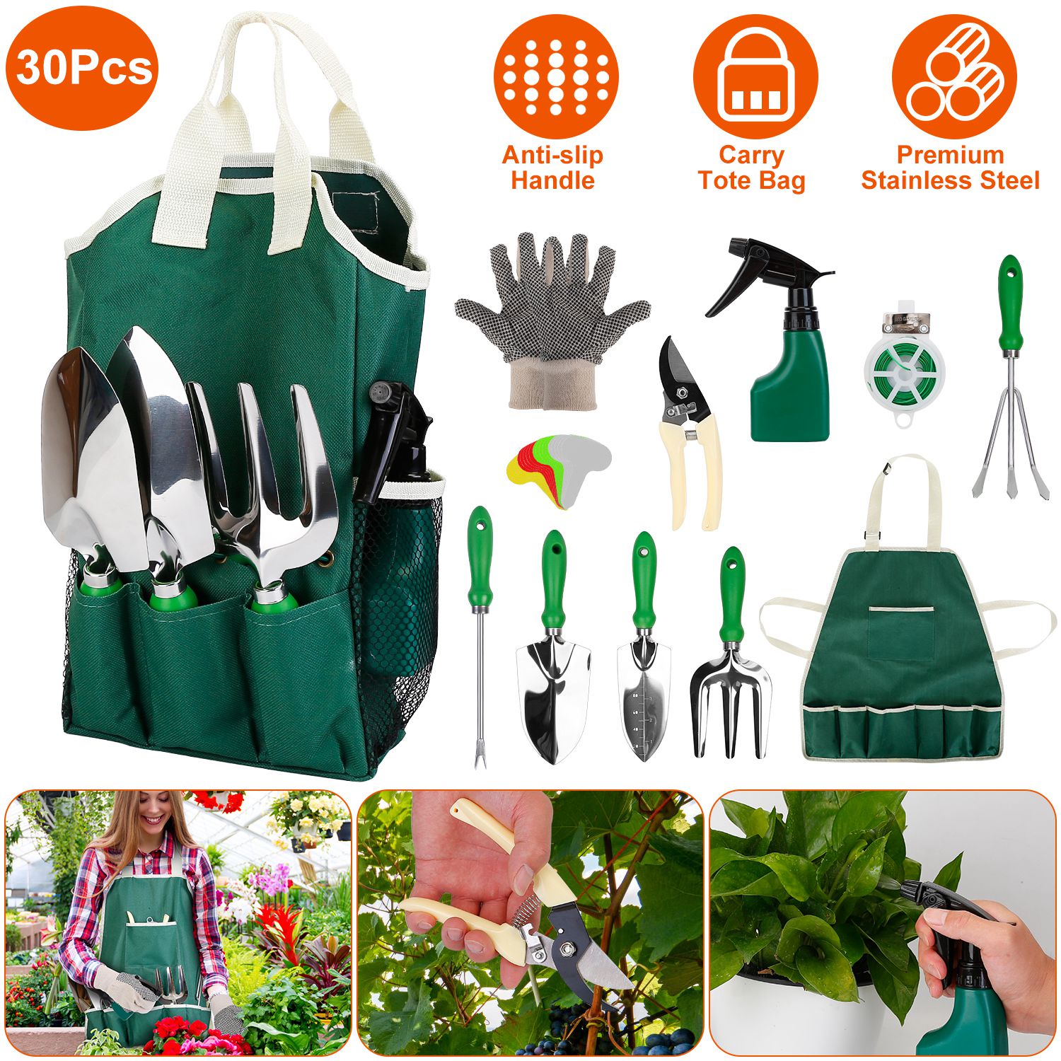 Home > Garden Tool Set 30Pcs Stainless Steel Hand Tools Kit Planting Gardening Work Set with Storage Bag Gloves Apron for Women Men