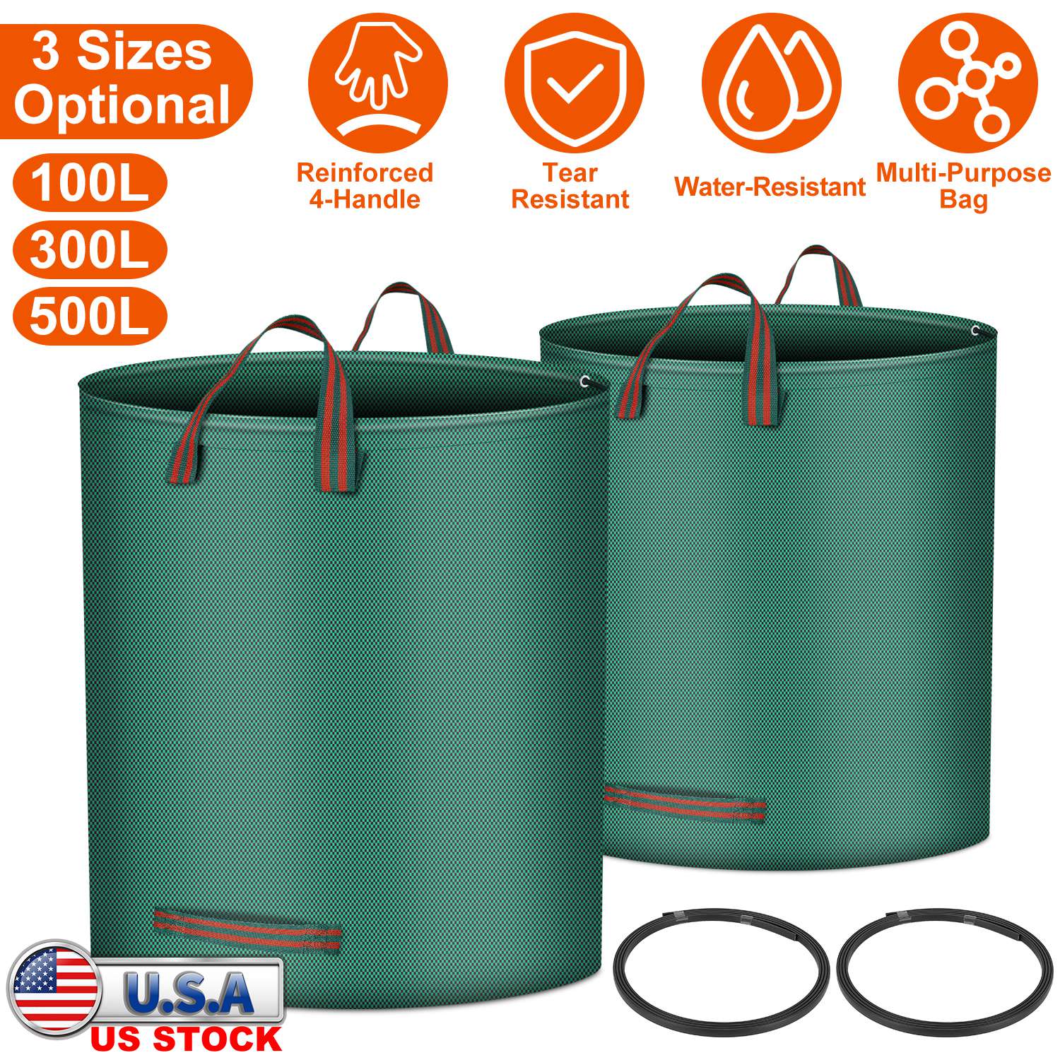 Made of durable PP woven fabric, tear resistant and water resistant, our garden waste bags are suitable for collecting weeds, grass clippings, as well as your home items. Four sturdy carrying handles provide much portability. Just put the flexible hoop into the bag opening mouth to support the lawn bag for easy collecting and emptying leaves and other yard debris.