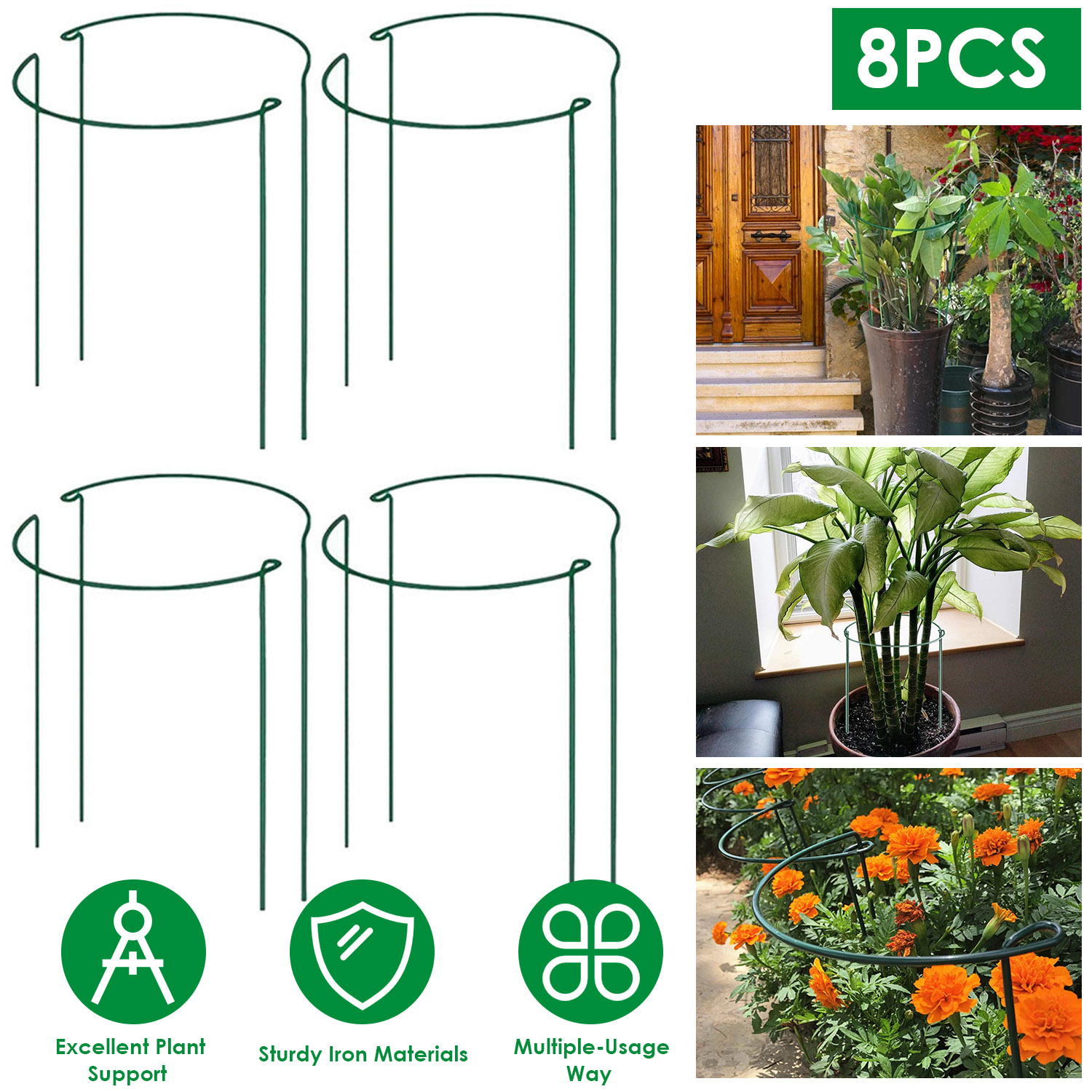 8Pcs Garden Plant Support Stake Half Round Iron Garden Plant Support Ring Green Border Support Plant Ring Cage For Rose Flowers Vine Tomato Hydrangea