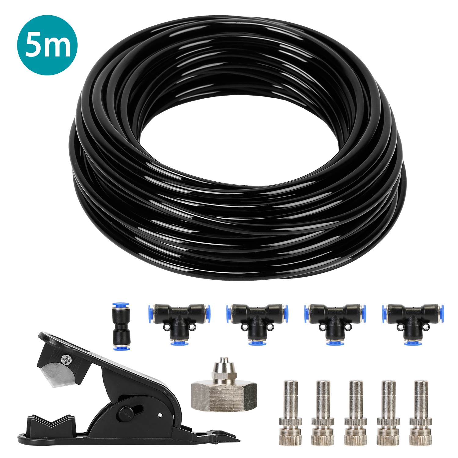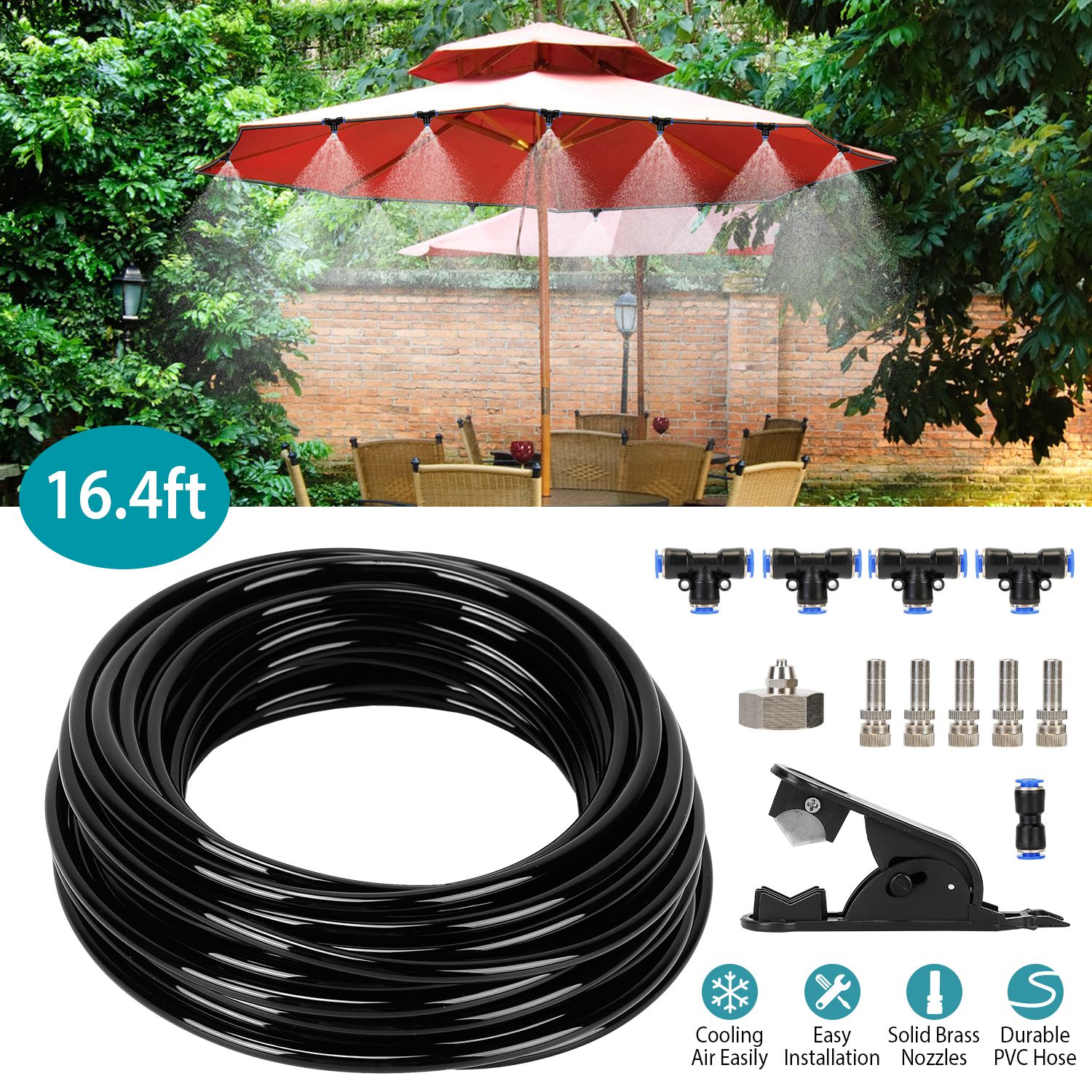 16.4ft Misting Cooling System Water Mister Nozzles Set Garden Irrigation w/ 5 Mist Nozzles for Patio Garden Greenhouse