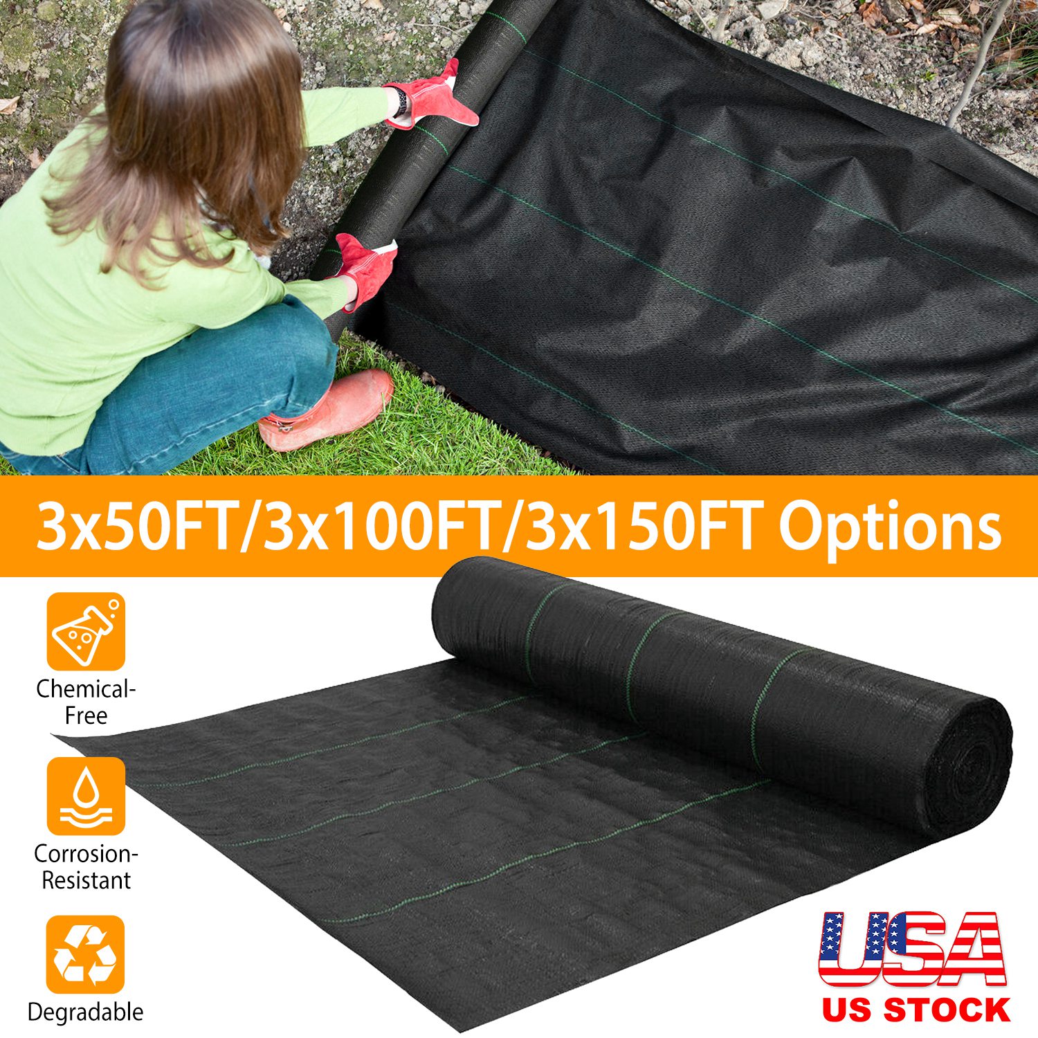 3x150FT Weed Barrier Landscape Fabric Weed Control Garden Block Gardening Mat Fabric Woven Ground Cover Earthmat